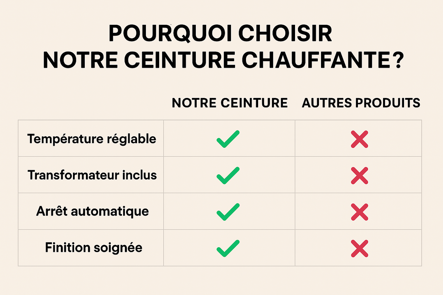 Contrairement aux solutions classiques (médicaments, bouillottes…), cette ceinture offre un soulagement immédiat, naturel et durable.